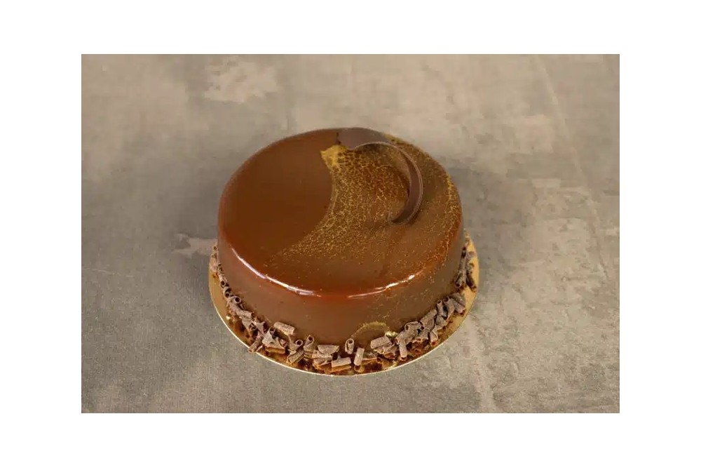 Tort na czekoladowym spodzie, przełożony bitą śmietaną z belgijską czekoladą deserową i whisky. Całość wykończona ciemną polewą i delikatną dekoracją