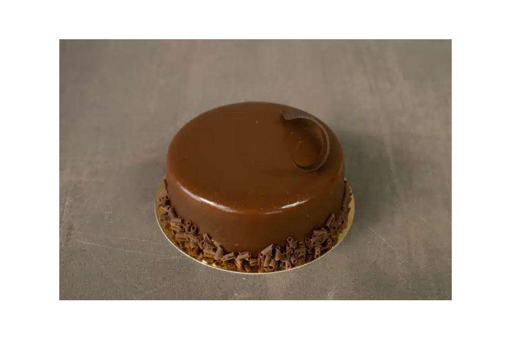 Dwie warstwy ciasta kakaowego, z dodatkiem musu z białej i deserowej belgijskiej czekolady