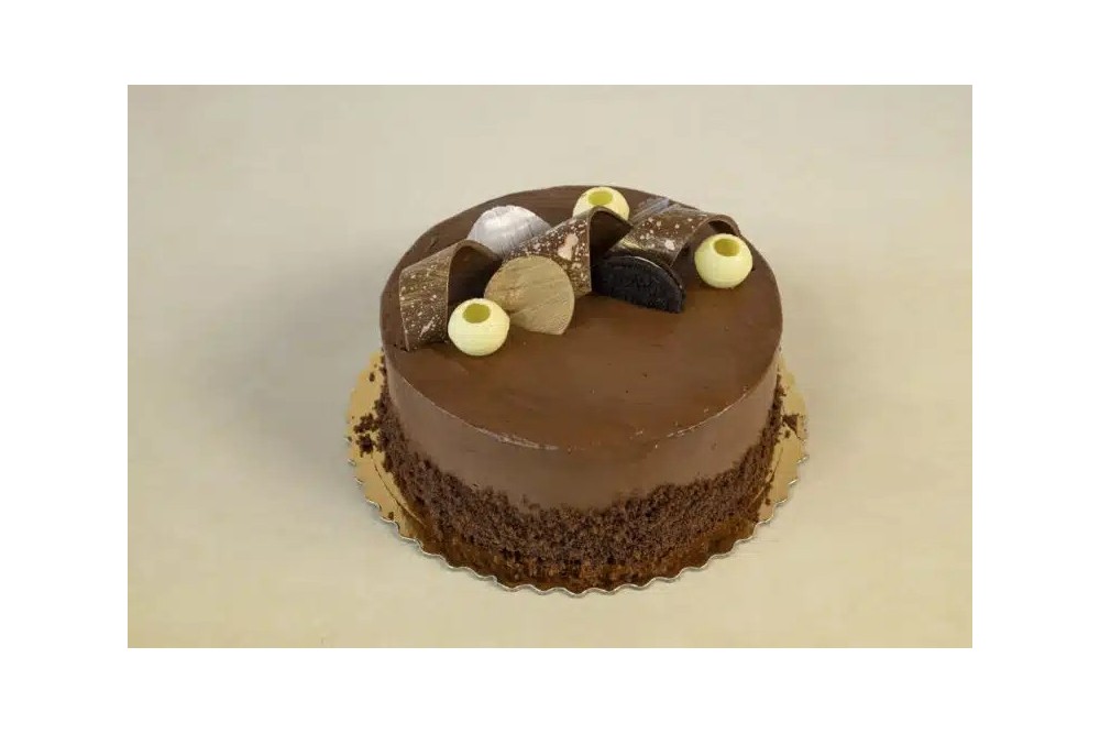 Tradycyjny tort czekoladowy na bitej śmietanie, na ciemnym, kakaowym biszkopcie nasączonym syropem. Wykończony delikatną dekoracją (wg życzenia klienta).