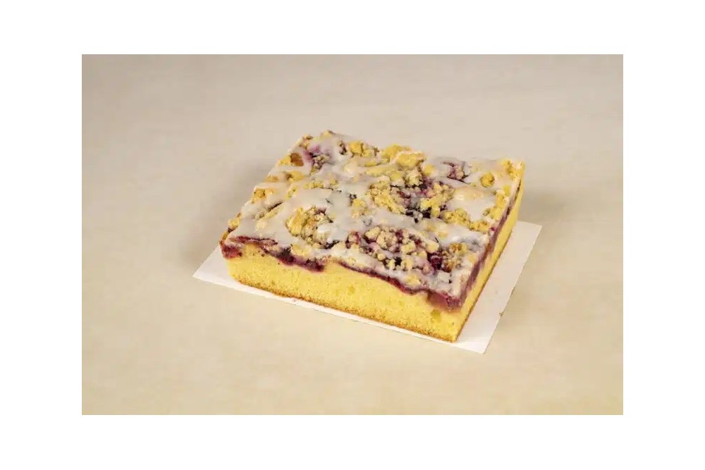Delikatne i wilgotne ciasto o smaku maślanym z dodatkiem owoców: śliwki, jagody, brzoskwinie, udekorowane maślaną kruszonką.